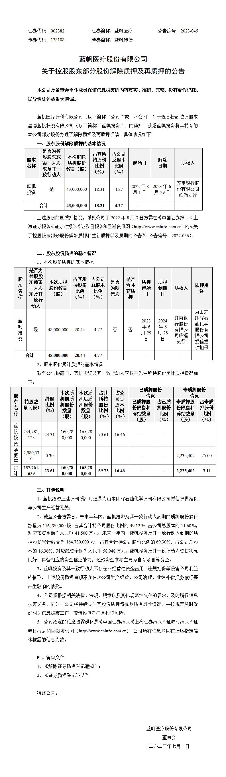 关于控股股东部分股份解除质押及再质押的公告