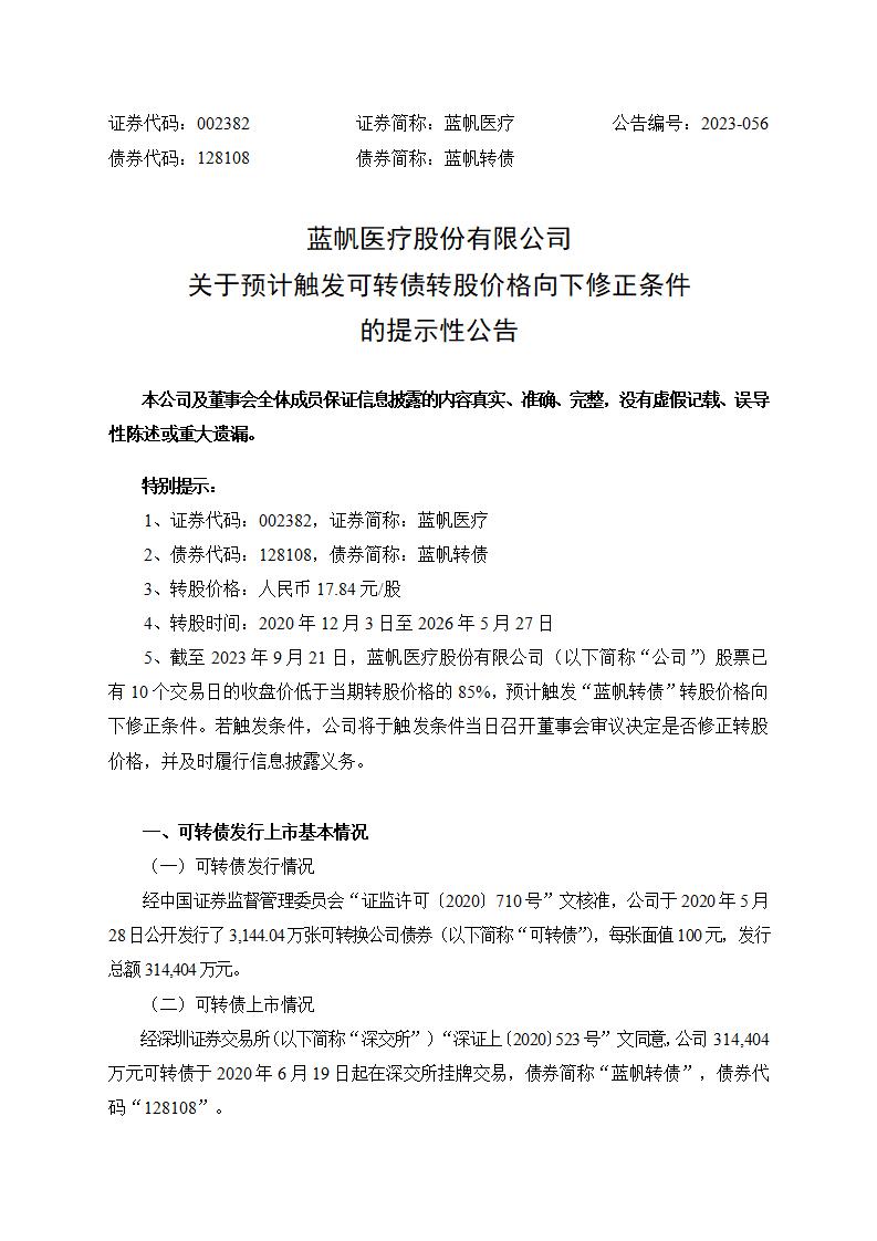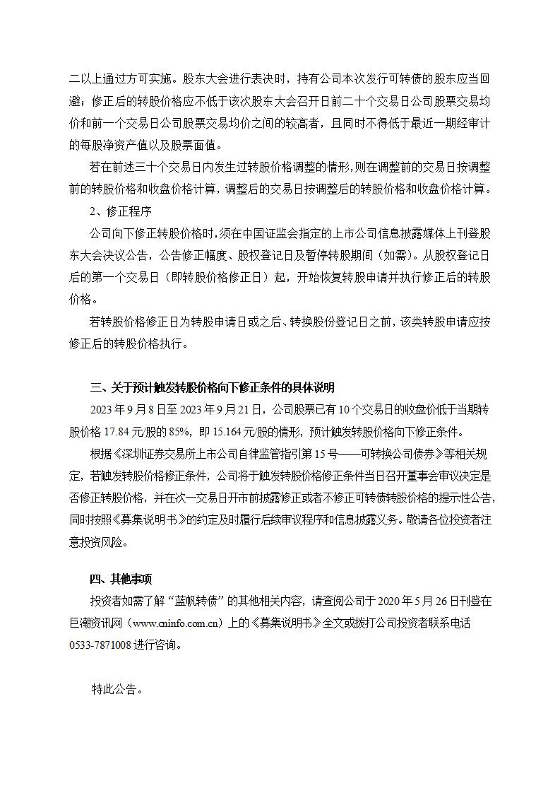 关于预计触发可转债转股价格向下修正条件 的提示性公告