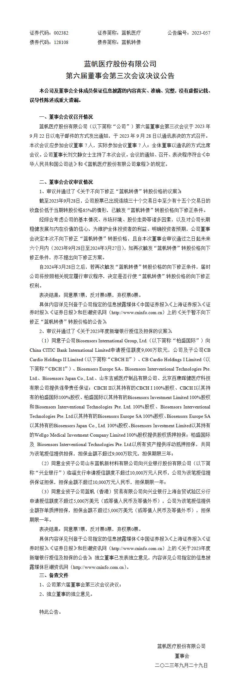 第六届董事会第三次会议决议公告