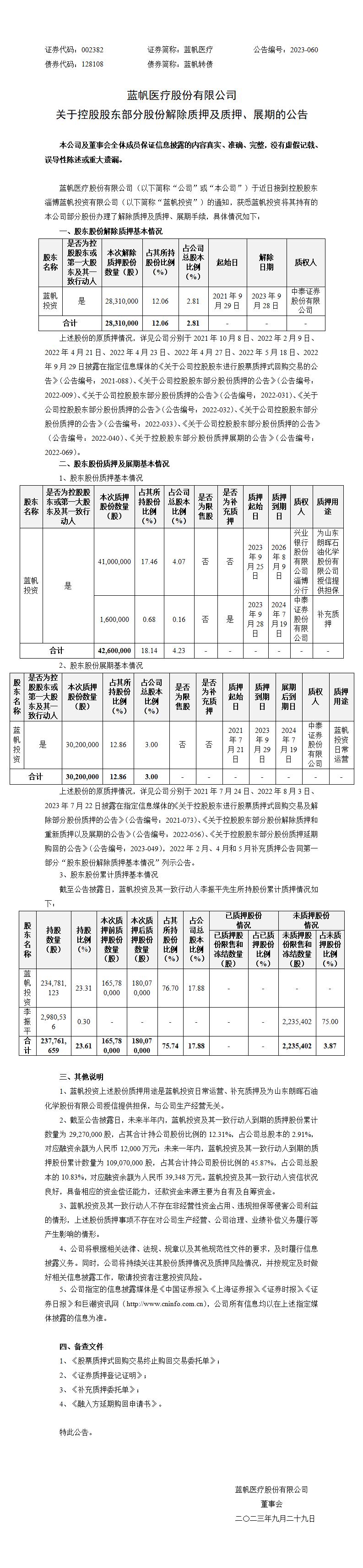关于控股股东部分股份解除质押及质押、展期的公告