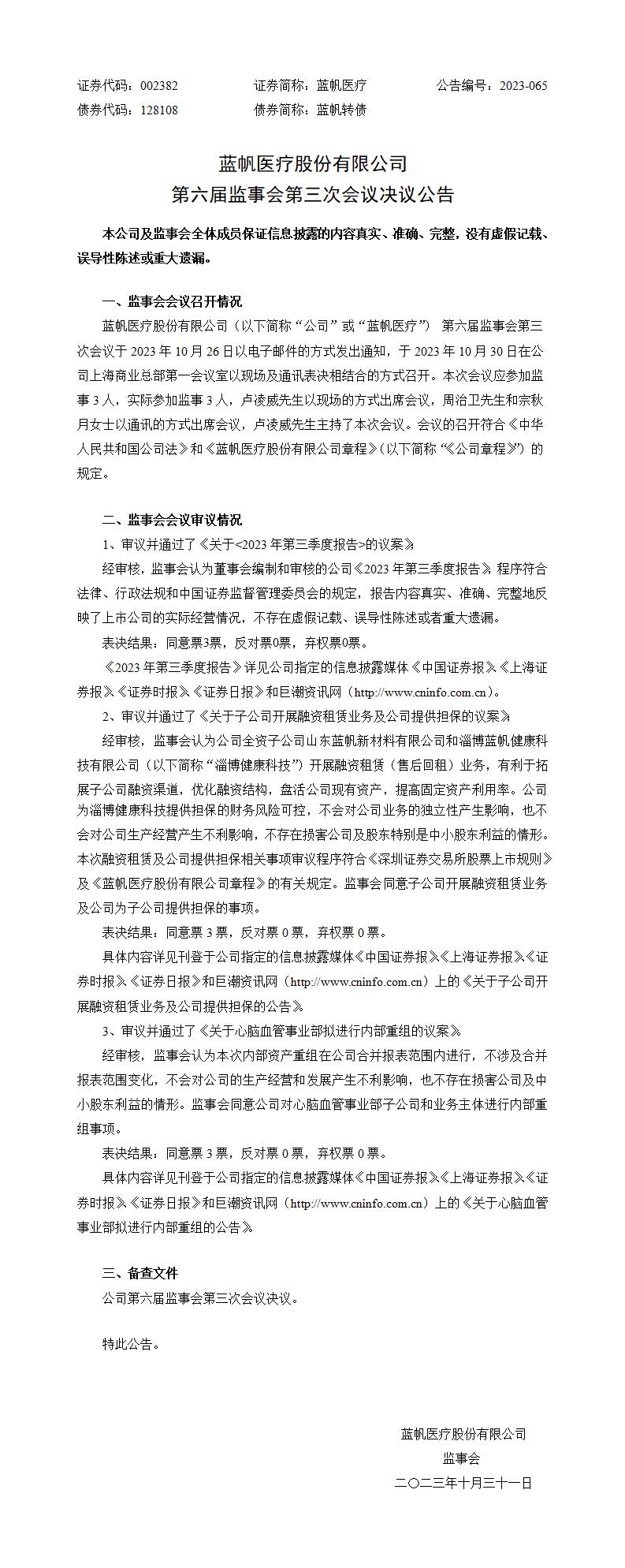 第六届监事会第三次会议决议公告