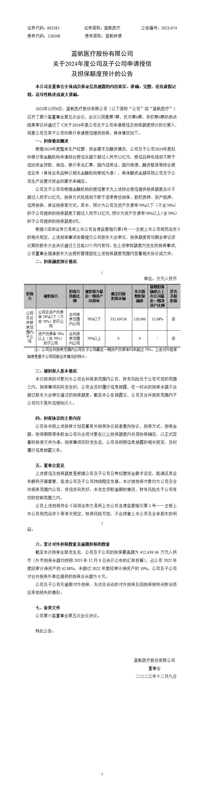 关于2024年度公司及子公司申请授信 及担保额度预计的公告