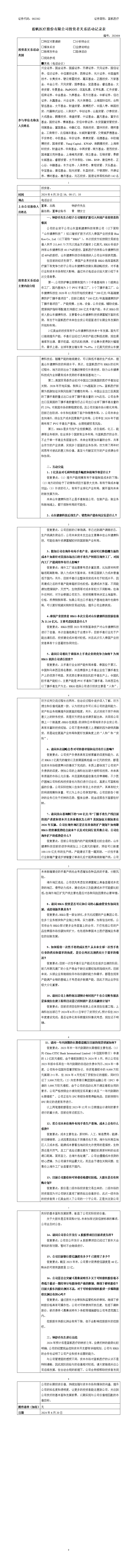 6月bob电竞竞技 医疗股份有限公司投资者关系活动记录表