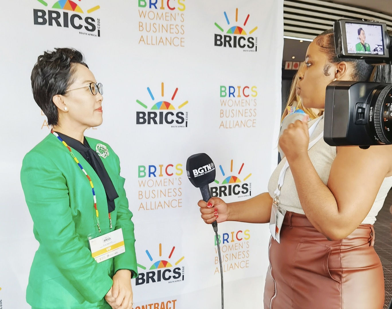 在金砖祖国地区女孩工商部门同盟-非洲地区进出口洽谈会“化成就为机会:推向亚洲包容心性持续增长”的探讨会探讨中,刘溫柔董事会成员长看作我们厂家家指代与金砖祖国地区佳宾一齐做聊天分享图片。