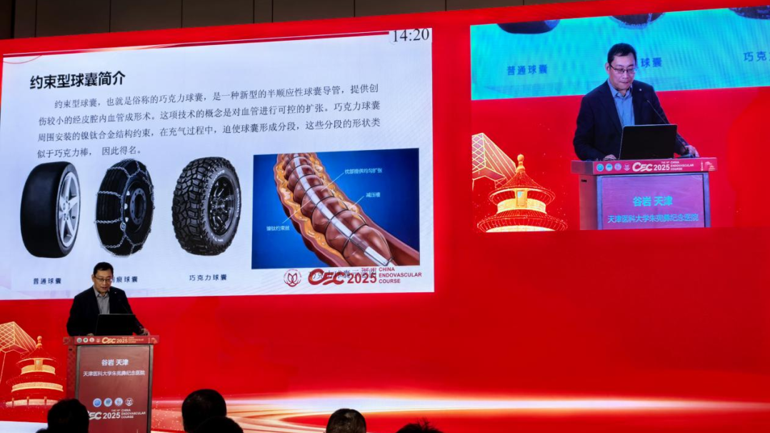 上市仪式后,会议进入精彩的病例分享环节。首先,谷岩教授(天津医科大学朱宪彝纪念医院)带来了 《约束球囊在下肢动脉闭塞病变的应用体会》 的专题报告。他通过详实的病例,深入浅出地分享了金蚕™约束球囊在处理长段闭塞病变中的独特优势与应用技巧,其出色的通过性和可控的扩张性能,为开通此类难题提供了新的思路。